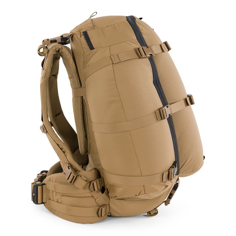 A Load-Shelf is integrated into all of our frames, allowing the user to expand the bag off the frame to pack gear or meat in between the bag and the frame. This eliminates the need to put meat inside the bag and keeps the heaviest of loads more stable and closer to your back for increased comfort.