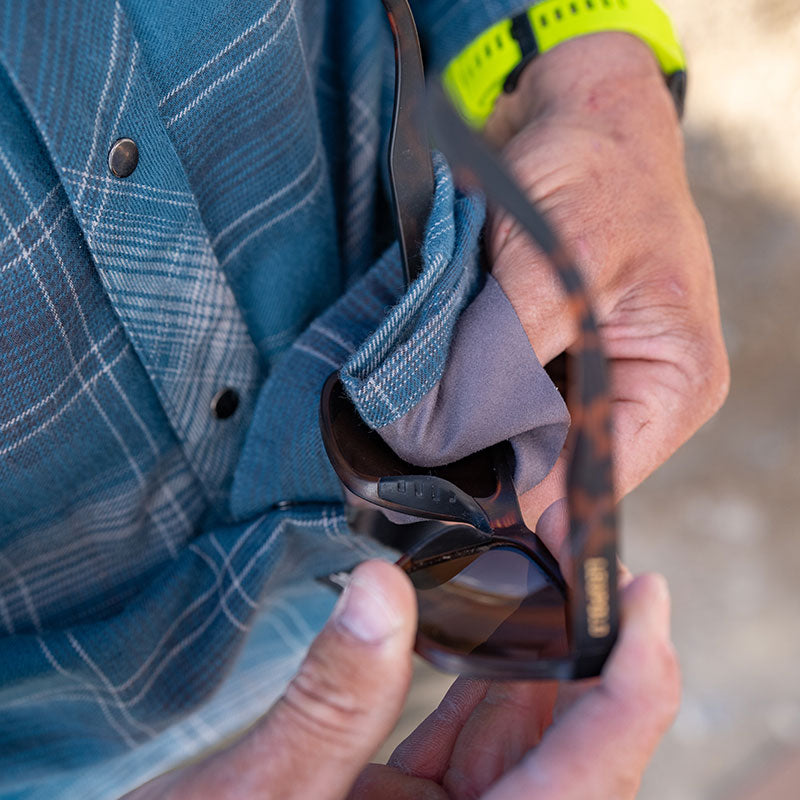 - Hidden sewn-in lens cloth
